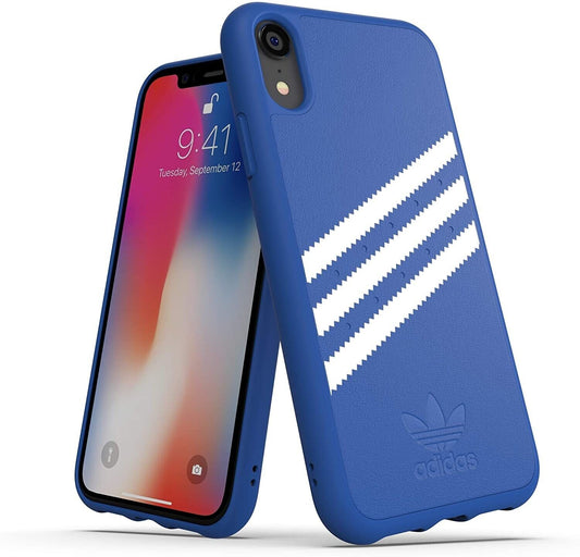 adidas Moulded Suede - Custodia per Apple iPhone XR, colore: Blu/Bianco