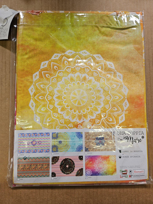 SET PAREO IN MUSSOLA + BORSA MARE DONNA SPIAGGIA PAREO 170X100, BORSA 25X35 HUARI