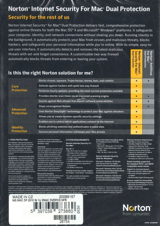 Symantec Norton Internet Security Dual Protection 2011 per Mac (1 utente / 2 Mac)