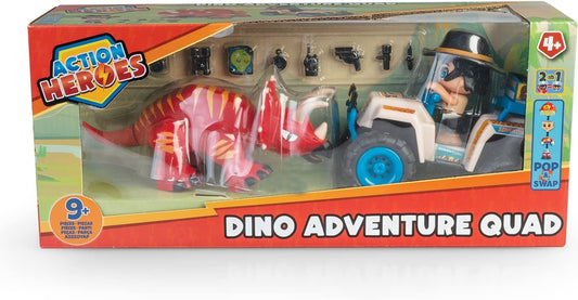 ACTION HEROES Dino Adventure Quad, Quad con personaggio, dinosauro triceratopo e accessori, per bambini e bambine dai 4 anni,