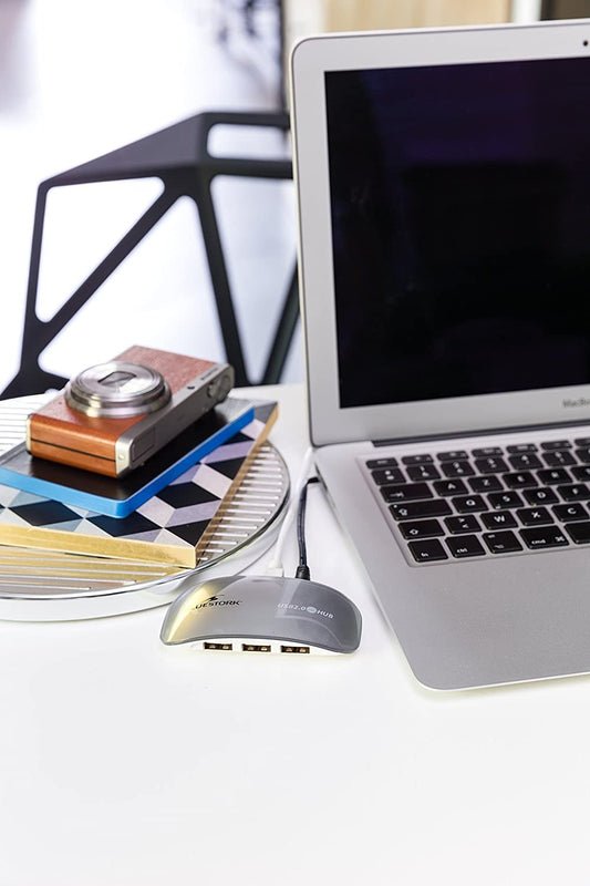 Bluestork Industry Blu_USB4M_PS - Hub USB 2.0 con 4 Porte con Alimentatore Esterno 2.1 Amp, Colore: Argento